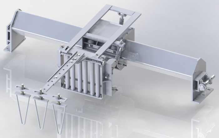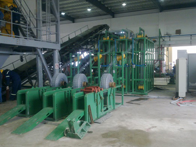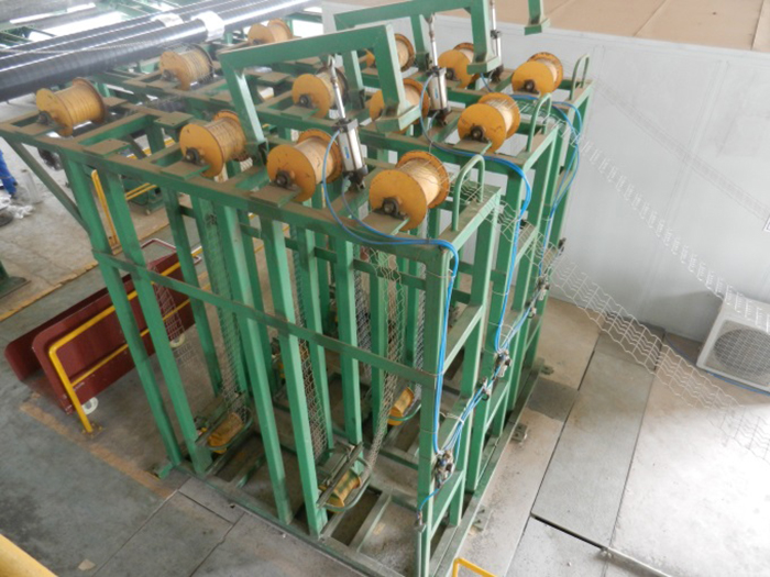 Function description:Steel mesh out device includes device for steel mesh roll,tension device, winding device,etc.Before pipe rotated uniformly forward to ejection roller, hanged the steel mesh to the pre-installed hooks. This can effectively guarantee that the concrete coating material attached on the pipe wall.