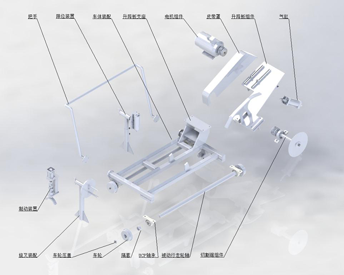 Function description: Cutting trolley includes walking trolley, cutting device ,limit device, etc. This device is mainly for cutting concrete weight coating layer and guarantee the reserved length of coating layer.