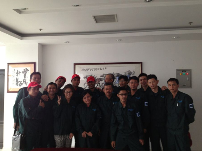 我司與印度尼西亞BAKRIE公司簽訂管道外防腐生產(chǎn)線銷售協(xié)議,2014年7月14日,BAKRIE公司員工一行15人來到我司產(chǎn)品銷售客戶海隆集團進行管道外防腐設(shè)備操作培訓(xùn)。